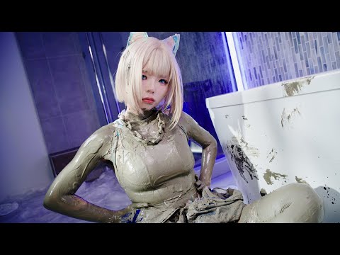 In the first half, Akka dives into thick slime and baths in sticky mud, in her complete tracksuit and swimsuit set. (YOU ARE HERE)